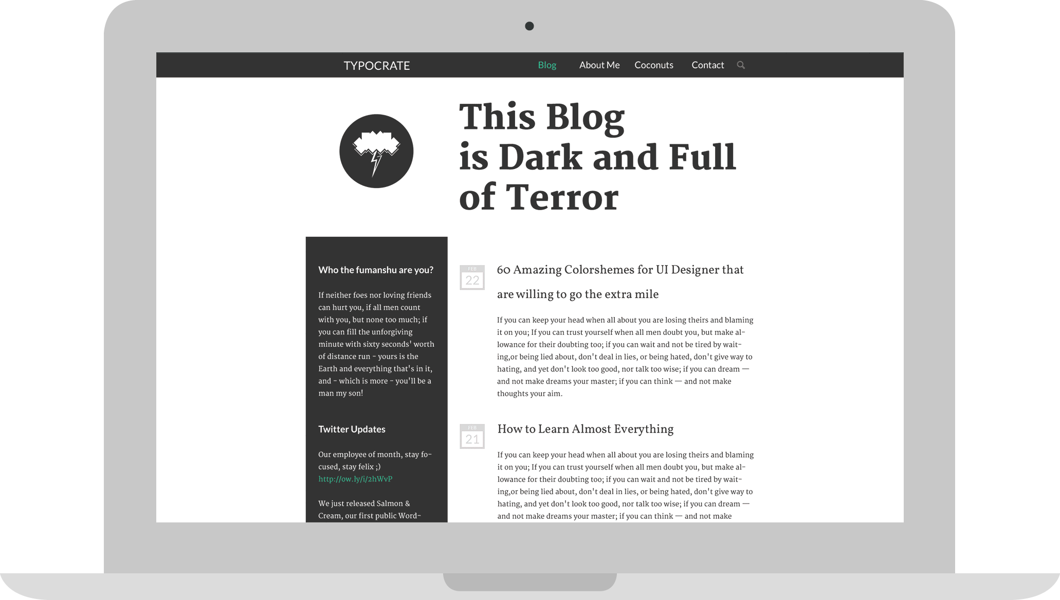 No online experience can flourish without a carefully tweaked design for phones and tablets. Neither does Typocrate, equipped with fully responsive design it'll show its beauty in all formats.